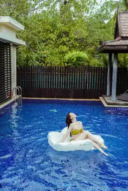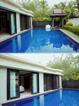 🛏 Highly recommend the villa rooms with private pools! Spend the day splashing in your private pool, then lounge on the deck chair for a sunbath when tired; at dusk, watch the sunset dye the pool orange, creating an atmosphere that’s off the charts! This kind of private vacation experience is truly exhilarating!
