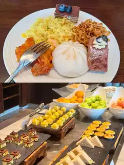 - Open 12:30–21:30 with all-day soft drinks and snacks. Afternoon tea (sandwiches + fruit) and dinner (6 hot dishes + salad) are simple but complemented by free-flowing drinks (self-serve wine and cocktails, with staff refilling glasses).