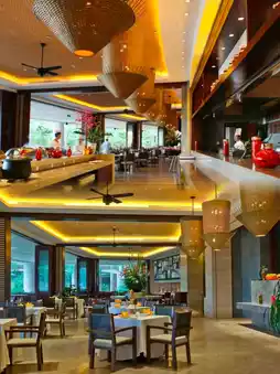 Dining is a highlight. The all-day dining venue serves a fusion of Chinese and Western delicacies, from freshly caught seafood to authentic Hainanese chicken rice, immersing your palate in tropical flavors. The poolside bar offers elegant afternoon teas—share desserts under swaying palms while reminiscing about campus days. For local flavors, nearby night markets brim with specialties like qingbuliang (coconut dessert) and Lingshui sour noodles, satisfying every craving.