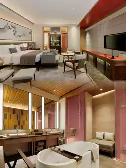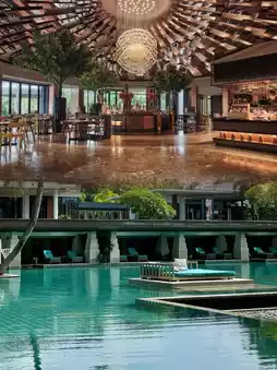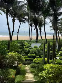 This is a hidden paradise kept secret by the waves—open your window to the deep blue South China Sea, stroll on fine sand glowing in morning light, and sway with coconut palms as the ocean breeze carries fruity freshness. Built along the bay, the resort's Southeast Asian-inspired architecture blends into lush greenery, with wooden and rattan elements weaving natural breathability into every corner.
