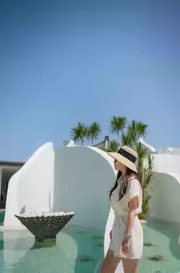 🔸 The entrance features a stunning "From the Moon to the Ocean" domed water curtain design, with light filtering through. 🧘🏻♀️ The morning ritual (star-gazing pool with Tai Chi performances) is held here. Arrivals and departures are handled by butler-driven cars, but we recommend a leisurely afternoon stroll.