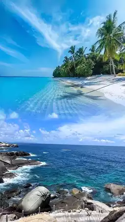 ✅Seaside Bathing Beach: Has a few coconut trees, the sea is bright blue and photogenic; sitting and resting is comfortable, but beach chairs reportedly charge a fee, so ask first