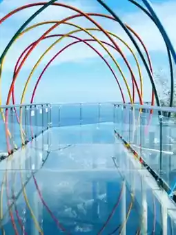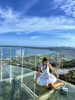 At the entrance, they gave us fabric shoe covers to protect the glass surface — a small detail that added to the experience. And the best part? We had the entire bridge to ourselves. No crowds, no noise — just us, the glow of the setting sun, and the incredible panoramic view over the deep blue of Yalong Bay ❤️