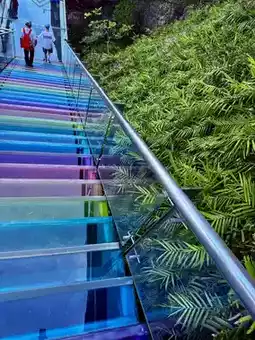 When we reached the top, the air was cooler, the light softer, and the whole area felt calm and pristine. We only had about 45 minutes left before closing, so we headed straight for the park’s highlight: the full sea view glass bridge.