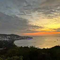 Sunset is magical here — the sky shifts from gold to pink to deep purple, and the city lights start to twinkle below. It’s also a romantic spot at night, with illuminated paths and the soft sound of the sea breeze.