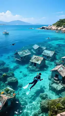 - 300-year-old house ruins coexisting with coral, maximum shock value
