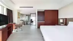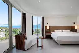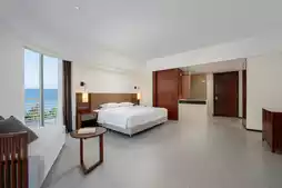 Not all sea views require a formal and grand reception. Our premium side sea view king room offers a more elegant way to connect with the ocean. Standing by the spacious floor-to-ceiling window, the sea is no longer a panoramic painting but a private treasure by your bedside. The waves whisper softly in your ears, and distant sails adorn the window frame. Amidst the hustle and bustle, this room carves out a tranquil retreat, immersing your body and soul in a slanted expanse of blue. Here, gazing at the sea becomes an effortless glance, and resting transforms into a luxurious dialogue with oneself. When sunlight streams into the room at the perfect angle, the horizon gently meets your gaze. This is not an overwhelming grandeur but a companion that quietly flows into your heart. Lying in bed, watch the light and shadows sketch the shapes of waves on the walls; nestled on the sofa, let a good book and the sound of tides compose a harmonious melody. The side view of the sea feels like a reserved old friend—never intrusive, yet always present. Perfect for embracing your loved one, watching her profile illuminated by the slanted frame of sea and sky, as time stretches into a soft and tender moment.