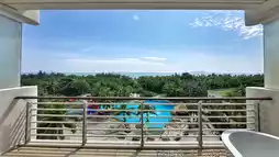 · Panoramic Floor-to-Ceiling Windows: Massive glass walls bring sunlight and partial ocean views indoors. Whether you wake up lazily in the luxurious bed or sip a drink on the lounge chair, the expansive ocean view and coconut groves serve as your exclusive dynamic backdrop.