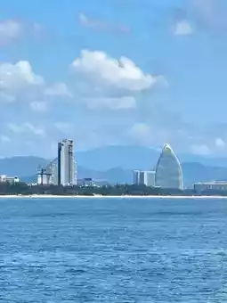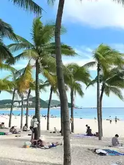 Sanya and Dadonghai Bay on Hainan Island as a tropical paradise with soft white sand, warm turquoise waters, and a relaxing island atmosphere. The bay is one of the most popular beaches in Sanya, loved for its clean shoreline, gentle waves, and convenient location near shops, cafes, and resorts. Visitors enjoy swimming, snorkeling, or just relaxing under palm trees while watching the sunset over the South China Sea. Reviews often highlight the friendly locals, fresh seafood restaurants, and the lively yet peaceful mood of the area. The beach is safe and family-friendly, with clear water and good facilities. Many travelers also like that it’s easy to reach from the city center and close to other attractions like Luhuitou Park. Guests say Sanya offers both adventure and calm — from luxury hotels to local markets, it blends modern comfort with natural beauty. Overall, Dadonghai Bay is praised as a perfect getaway for beach lovers seeking sunshine and serenity.