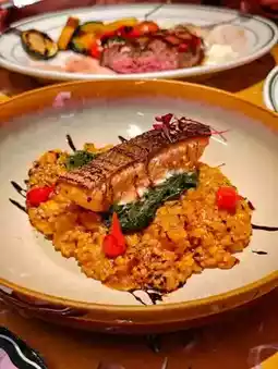 ⬇️ And the salmon (79 yuan) completely stole my heart. Tender fish, rice infused with spices, a light saffron aroma — I was ready to order another portion right away.