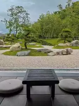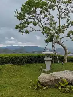 🌼 We arrived in the morning, when there were hardly any people around. We grabbed tea and an ice cream shake, settled in on the terrace in front of the Japanese garden, and simply lost ourselves in the moment. Before our eyes were manicured bushes, smooth stones, dwarf pines, and distant hills shrouded in mist. We sat there, absorbed in this tranquility, and it felt like Hainan was disappearing—as if we'd been transported to a Japanese island.
