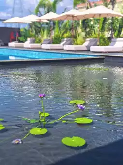 The pool is like a blue canvas, dotted with tropical lotus flowers quietly blooming. In the morning, awaken your taste buds with a hearty breakfast; at dusk, sit quietly facing the mountain in the courtyard.