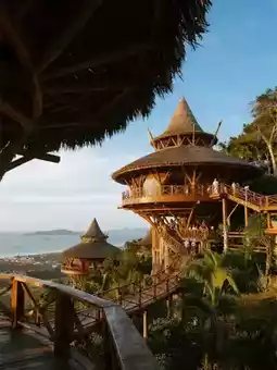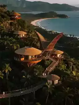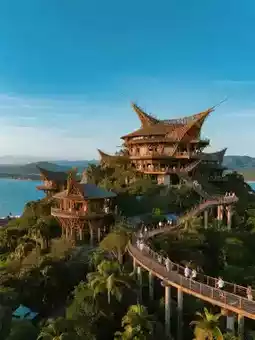 Not only can you overlook the blue Yalong Bay, but you can also experience the movie’s wedding trial room, walk on suspension bridges, and explore the rainforest.