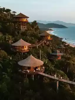 You can overlook the entire Yalong Bay, check in at the classic trial marriage room from the movie,
