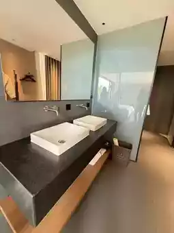 Lying by the large floor-to-ceiling window in the room, watching the coconut trees sway in the wind, listening to birdsong and cicadas, it felt like a deep embrace with nature. The sound of wind chimes in the courtyard relaxed the soul... Mountains, stone walls, and greenery—every step was a healing scene...