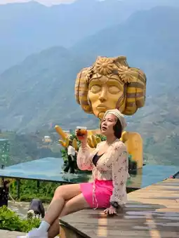 This is a popular tourist attraction in Sapa, Vietnam. It is not only a cafe for relaxing, but also a photo spot with a beautiful mountain and natural scenery as a backdrop.