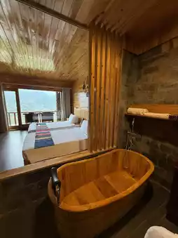The moment you step out onto the terrace, you’re greeted by lush, green scenery that’s absolutely stunning. The bed was super spacious, and the room itself was so large it could easily accommodate up to four people.