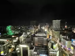 Unfortunately, the bathhouse is only available for higher-tier room types. However, there's an observation deck upstairs where you can enjoy the night views! You can see two Ferris wheels, creating a dazzling nightscape—definitely worth checking out.
