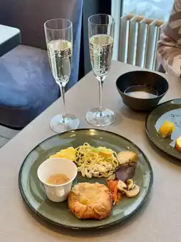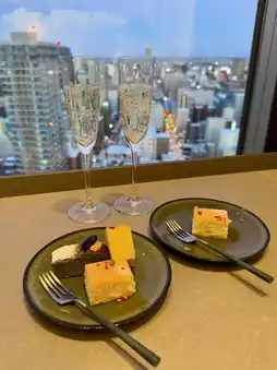 The matcha green tea gateau chocolate at tea time, hors d'oeuvres at cocktail time, and seafood yakisoba at breakfast were very delicious!😋
