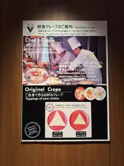 The signature here is freshly baked crepes. You can make your own original crepe by baking it in front of you and adding your own toppings.