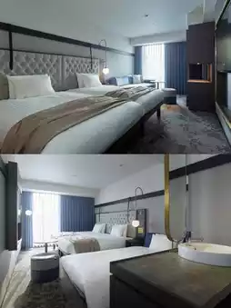 You'll be drawn in by the unique brick entrance and restaurant exterior, inspired by the nature and culture of Hokkaido. The modern, calm tones make you feel both comfortable and stylish. 🎨 The rooms also reflect the essence of Hokkaido, making you feel like you're in nature.