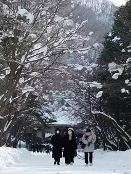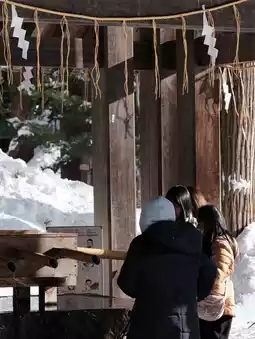 Winter worship has its own unique charm. In the light cold, clasp your hands together, lightly clap twice according to Japanese tradition, close your eyes and make a wish. You can feel both the sacredness of the shrine and a touch of warmth in the snow country. Especially when snowflakes occasionally fall from the eaves, adding a touch of poetry and romance to the moment.
