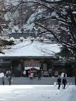 Walking slowly along the snow-covered path, surrounded by tall pines and silent torii gates, the sound of footsteps on the snow becomes the only background music. The scenery here is like a northern ink painting, immersing you in the pure beauty of nature. When you reach the main hall of the shrine, the building looks even more majestic against the backdrop of white snow, evoking a sense of reverence.