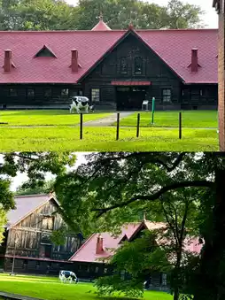 Based on Dr. Clark's large-scale farming vision, wooden livestock barns and other buildings built in the Meiji era are open to the public.