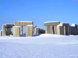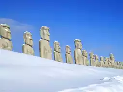 In addition, the Moai statues standing in the snow field and Stonehenge are buried in snow.