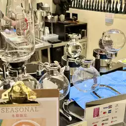 The cute coffee tools and coffee bean display cases in the store are impressive.