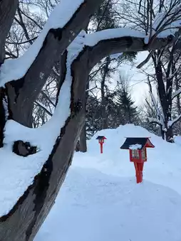 Compared to Fushimi Inari Shrine in Kyoto, Sapporo Fushimi Inari Shrine is a low-key but charming place. Here you can find Hokkaido's unique snow-scape torii. The red Thousand Torii gates are particularly dazzling in the white snow, creating a quiet and sacred atmosphere.