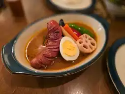 The famous soup curry restaurant ⭐️ZORA⭐️ in Sapporo is a small eatery located near Odori Park. Despite being in a bustling area, it has a strong vintage vibe. While their main dish is soup curry, they also offer a few simple menu items. The lunch set is priced at just 1,200 yen, making it a very affordable place to dine. It's popular not only among tourists but also with locals for lunch.