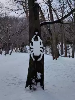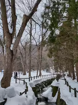 Take the subway to Maruyama Koen Station and walk into the park. The entire park is filled with giant trees. Despite the thick snow, there are still many locals walking or walking their dogs. Artists have created many snow art pieces on the trees, which are very impressive.