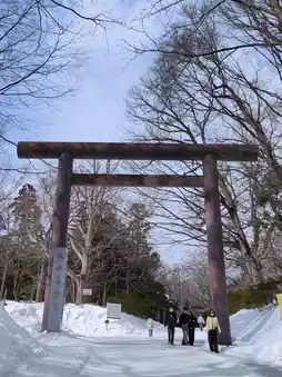 Walk to the adjacent Hokkaido Shrine. The solemn shrine covered in white snow adds to its sacred feeling. According to tradition, cleanse your hands at the temizuya, then proceed to the main hall. I happened to witness a family photo session after a wedding, which had a very Japanese touch.