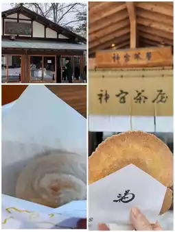 While you're there, stop by Rokkatei to have a Hanagaki Mochi (¥140), and buy a Fukubiki Mochi (¥250) at the shrine's tea house. One is slightly roasted and the other is hot-pressed, both are delicious red bean mochi snacks.
