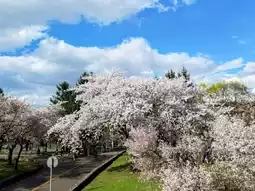 The park is home to around 250 cherry trees, including Hokkaido's unique Ezo mountain cherry blossoms and Somei Yoshino cherry blossoms. The blooming season typically peaks in late April to early May, offering a relaxing atmosphere for cherry blossom viewing.