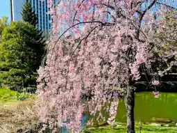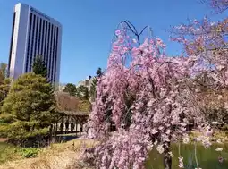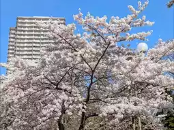 #Nakajima Park is a famous maple viewing spot in Sapporo city. In fact, there are also cherry blossoms to enjoy in spring. Ezoyama cherry blossoms, Somei Yoshino cherry blossoms, Yaezakura, etc. are planted around the pond and in the green space. Although the scale and number of cherry blossoms are not as spectacular as maple leaves, surrounded by high-rise buildings and set against the beautiful Toheikan, Nakajima Park is also decorated with spring cherry romance.