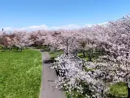 There is a secret cherry blossom viewing spot called "Toyohira River Sakura-no-Mori" in the riverside green space next to Sapporo IC and Kita-24jo Bridge. As the name suggests, it is a place where cherry blossoms are in full bloom. There are more than 500 cherry trees planted along the green space along the river, ranging from the early-blooming Ezoyama cherry blossoms to the late-blooming Somei Yoshino cherry blossoms, extending the entire flowering period to a full month.