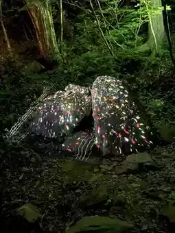 In the evening, I wandered over to Jozankei Futami Park, where the trees were softly lit and projection mapping danced across the landscape. It felt magical—like walking through a forest dream 🌌