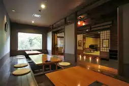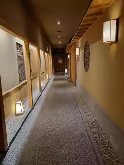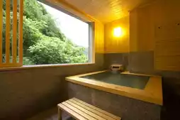 🏞️ The hotel is nestled in beautiful mountains, surrounded by magnificent natural scenery. The wooden interior design makes you feel as if you have entered a secluded little world. It is well-equipped with facilities, including a comfortable public bath and a relaxing lounge offering free drinks🌿. The stay experience begins the moment you arrive, with friendly staff guiding us to the sofa area to rest and serving Japanese sweets and matcha☕, making us feel cared for and welcomed. The rooms are spacious and bright, with a well-thought-out layout. The perfect blend of Japanese-style and Western-style rooms adds a special charm to our stay. A special touch is that someone comes to prepare the futon at night!