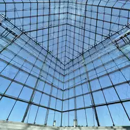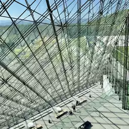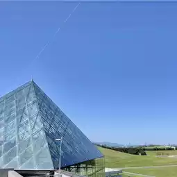 Inside the glass pyramid, you can see exhibits of Noguchi's works, experience air conditioning using snow,