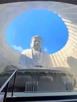 Walking through the tunnel to reach the full view of the statue felt calming and a bit surreal. The moment we entered the open space and saw the Buddha in full framed perfectly by the sky above it took our breath away.