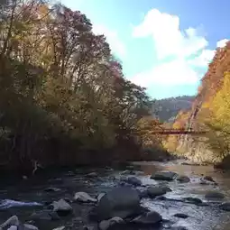 Jozankei Onsen is located in Hokkaido, Japan. There are many onsen hotels here, and many tourists come here to enjoy the autumn leaves, especially around the red Futamitsuri Bridge, considered the most beautiful spot in Hokkaido.