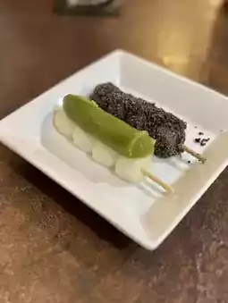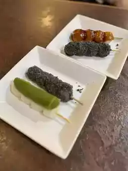 We tried three varieties: sesame, soy sauce, and matcha bean paste. The dango was surprisingly soft and had a delightfully chewy texture. The sesame was fragrant, the soy sauce was sweet and salty, and the matcha bean paste had a subtle bitter-sweet flavor. Beautiful in appearance, this is a Japanese dessert that's highly satisfying, even with just one stick.