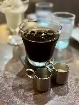 The soft serve ice cream was rich and satisfying. The iced coffee's refreshing bitterness made it a perfect match with the dango. The cafe au Lait's mellow flavor complemented the sweetness of the Japanese confectionery.