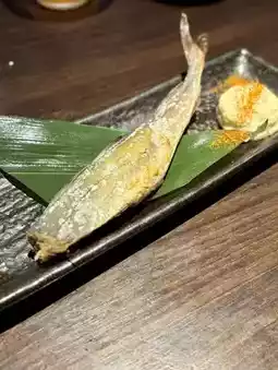 The Aonori (Long-fried Green Laver) Fried Dashi Tofu has a rich aroma and a gentle flavor. The grilled Komai is fragrant, and the kushikatsu is light and crispy. The pickled cucumber and nagaimo kimchi are perfect palate cleansers.
