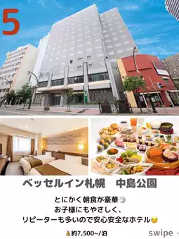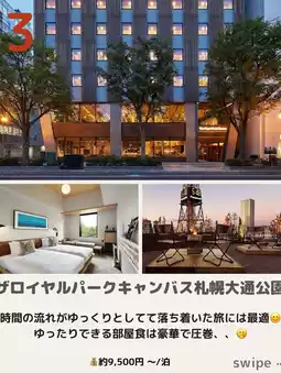 Carefully selected by a former travel agency employee! We're currently delivering cost-effective travel information for Gen Z office workers that will allow them to fully enjoy local experiences! We'll be posting recommended spots and travel tips that only a former travel agency employee can share, so follow us to get the latest information 😄@KawaTabi✈️Kanto Outings 🧳 —— ... Let me know in the comments! 🙏① Solaria Nishitetsu Hotel Sapporo 📍 1-2 Kita 4-jo Nishi 5-chome, Chuo-ku, Sapporo 🚶 5-minute walk from the south exit of JR Sapporo Station ② Yuen Sapporo 📍 6 Kita 1-jo Nishi 7-chome, Chuo-ku, Sapporo 🚶 Approximately 8-minute walk from Odori Subway Station, Exit 1 ③ The Royal Park Canvas Sapporo Odori Park 📍 12 Odori Nishi 1-chome, Chuo-ku, Sapporo, Hokkaido 🚶♀️ Approximately 1-minute walk from Sapporo Municipal Subway Odori Station (Exit 23) ④ Chateau Gateau Kingdom Sapporo 📍 132 Higashibarato, Kita-ku, Sapporo 🚶 Approximately 40 minutes by free shuttle bus from the group bus stop at the north exit of Sapporo Station ⑤ Vessel Inn Sapporo Nakajima Park 📍 1-2 Minami 9-jo Nishi 4-chome, Chuo-ku, Sapporo 🚶 1-minute walk from Nakajima Park Station