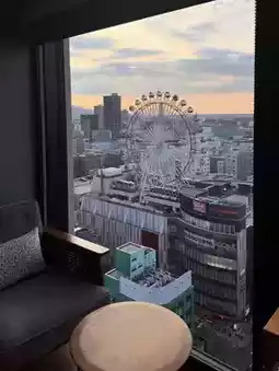 The view from our room was amazing, with views of the Ferris wheel and TV tower. 🎡