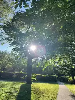 Enjoy the clear skies and cool breeze while relaxing on the campus. It's pure happiness! 🫠