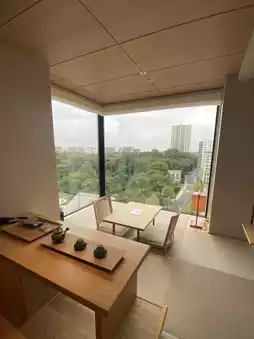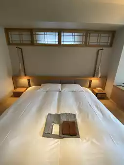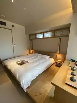 The guest rooms feature a modern Japanese design that exudes the warmth of wood,